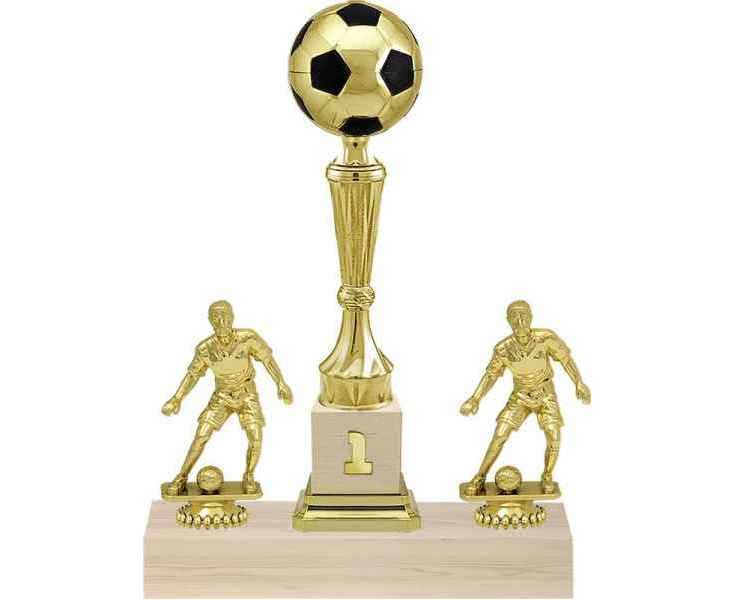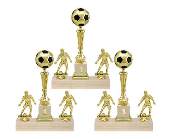 Кубок оригинальной формы с нестандартными дополнениями и подставками в виде подиума из натурального дерева. Отличный подарок или награда фанатам, болельщикам и любителям футбола.