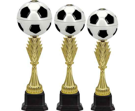 Серия кубков спортивной тематики с чашами, выполненными в форме футбольных мячей и изысканными стемами из пластика.