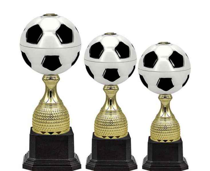 Серия кубков спортивной тематики с чашами, выполненными в форме футбольных мячей и изысканными стемами из пластика.