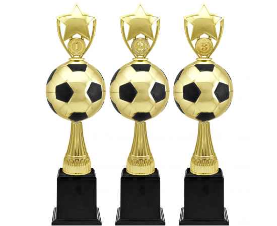 Серия кубков спортивной тематики с пластиковыми чашами, выполненными в форме футбольных мячей. Металлическая эмблема 25 мм в комплекте.