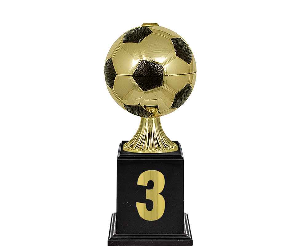 Серия кубков спортивной тематики с чашами, выполненными в форме футбольных мячей и изысканными стемами из пластика.