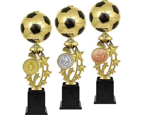 Серия кубков с чашами, выполненными в форме футбольных мячей. Отличный подарок или награда фанатам, болельщикам и просто любителям футбола. Металлическая эмблема 50 мм в комплекте.