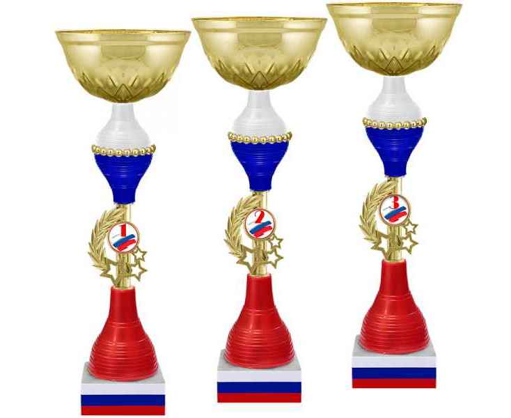 Серия кубков традиционной формы с элегантными чашами из металла и изысканными стемами из пластика. Металлическая эмблема 1,2,3 место 25мм в комплекте.