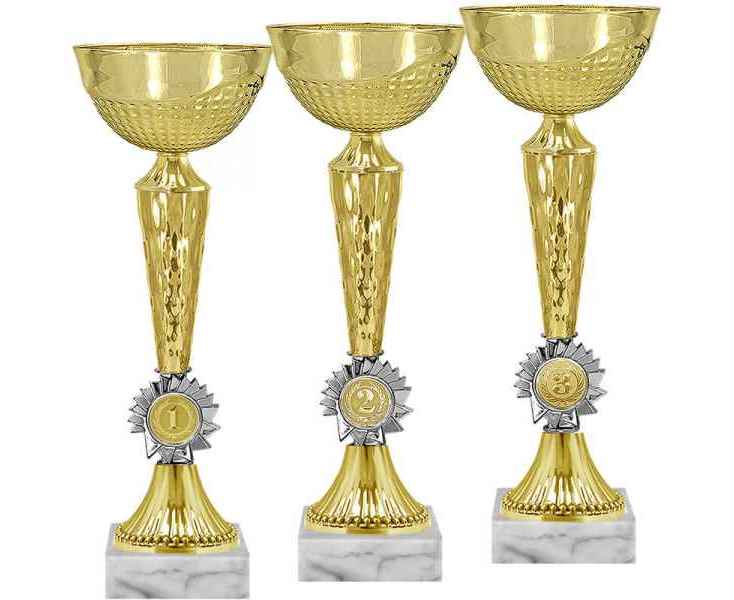 Серия кубков традиционной формы с элегантными чашами из металла и изысканными стемами из пластика. Металлическая эмблема 25 мм в комплекте.