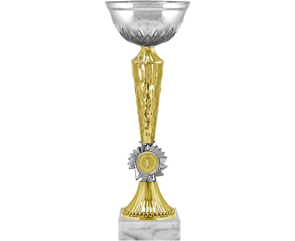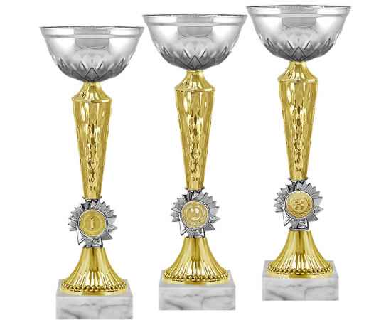Серия кубков традиционной формы с элегантными чашами из металла и изысканными стемами из пластика. Металлическая эмблема 25 мм в комплекте.
