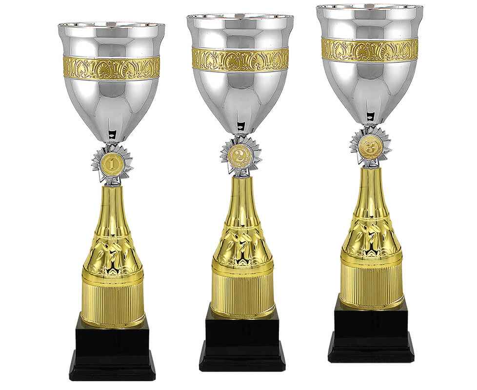 Серия кубков традиционной формы с элегантными чашами из металла и изысканными стемами из пластика. Металлическая эмблема 25 мм в комплекте. Скидка ограничена.