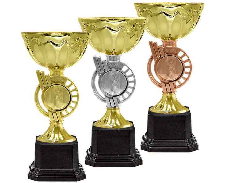 Серия кубков традиционной формы с элегантными чашами из металла и изысканными стемами из пластика.