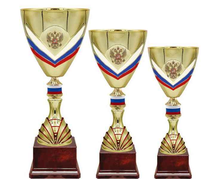 Продукция для истинных патриотов! Во всех изделиях присутствует символика РФ. Кубок, серия кубков традиционной формы с элегантными чашами из металла и изысканными стемами из пластика