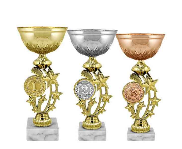 Кубок, серия кубков традиционной формы с элегантными чашами из металла и изысканными стемами из пластика. Металлическая эмблема 1,2,3 место в комплекте.