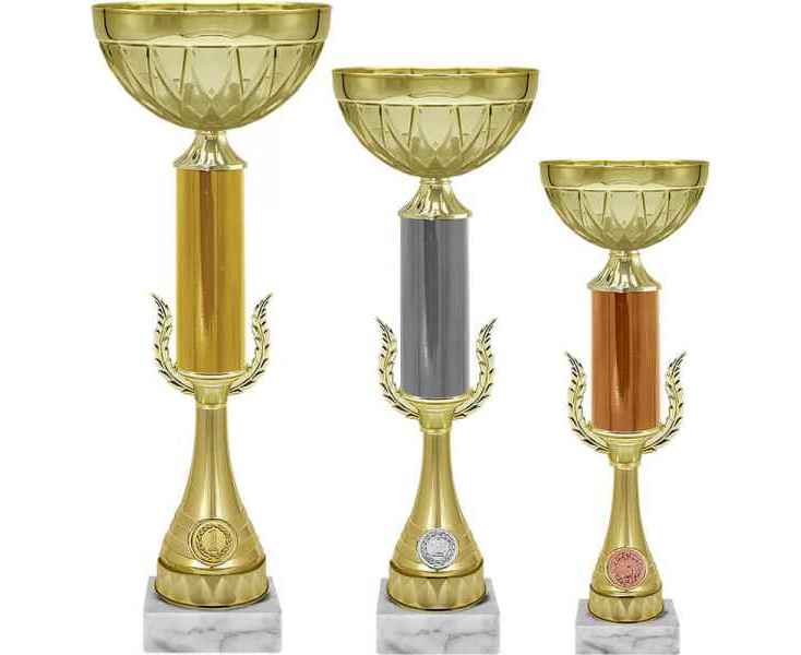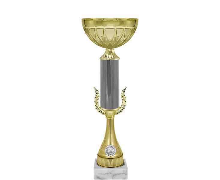 Кубок, серия кубков традиционной формы с элегантными чашами из металла и изысканными стемами из пластика. Металлическая эмблема 25 мм в комплекте.