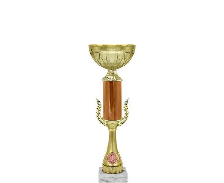 Кубок, серия кубков традиционной формы с элегантными чашами из металла и изысканными стемами из пластика. Металлическая эмблема 25 мм в комплекте.