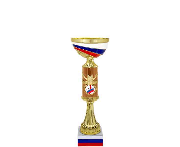 Кубок, серия кубков традиционной формы с элегантными чашами из металла и изысканными стемами из пластика. Металлическая эмблема герб России 1,2,3 место 25 мм (Э1) в комплекте.