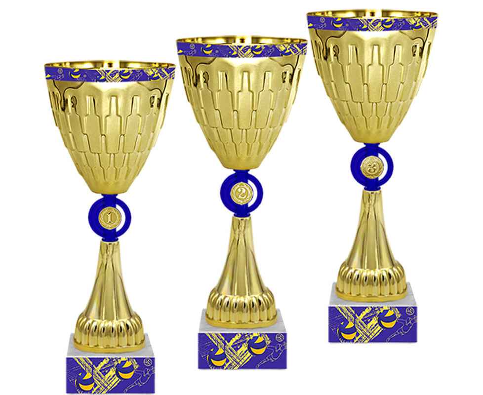 Серия кубков традиционной формы с элегантными чашами из металла и изысканными стемами из пластика. Металлическая эмблема 25 мм в комплекте.
