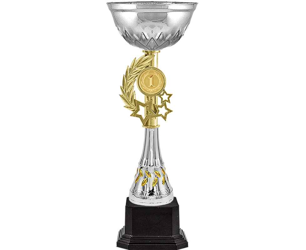 Кубок, серия кубков традиционной формы с элегантными чашами из металла и изысканными стемами из пластика. Металлическая эмблема 25 мм в комплекте.