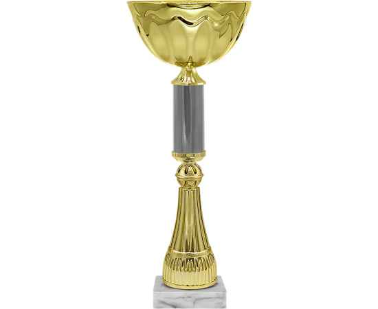 Серия кубков с чашами из металла и изысканными ножками из пластика. Средняя часть кубка представляет собой металлическую трубу.