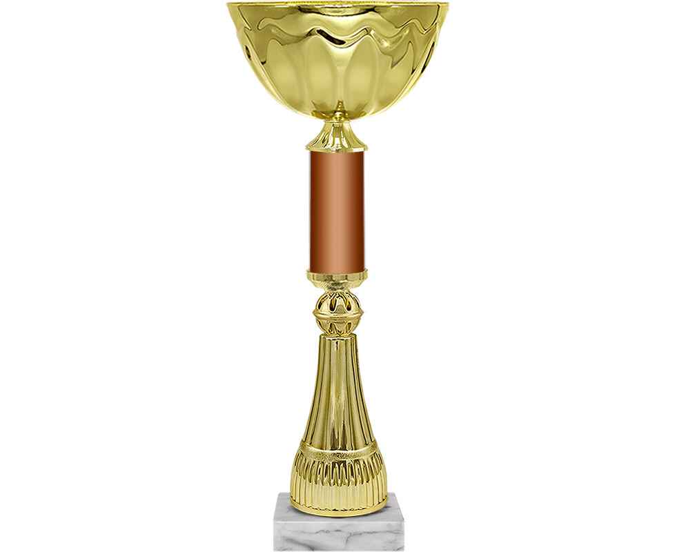 Серия кубков с чашами из металла и изысканными ножками из пластика. Средняя часть кубка представляет собой металлическую трубу.