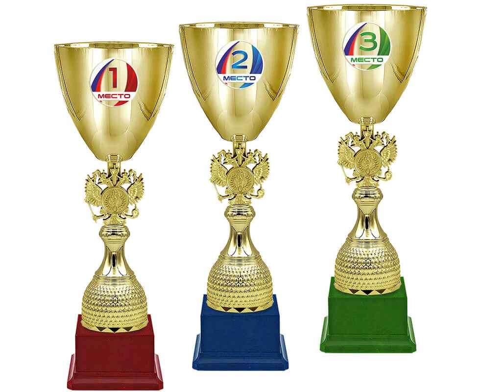 Продукция для истинных патриотов! Серия кубков традиционной формы с элегантными чашами из металла и изысканными стемами из пластика. Объемная наклейка 50 мм 1,2,3 место в комплекте.