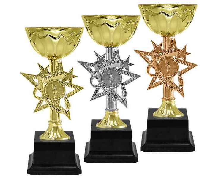 Серия кубков традиционной формы с элегантными чашами из металла и изысканными стемами из пластика.