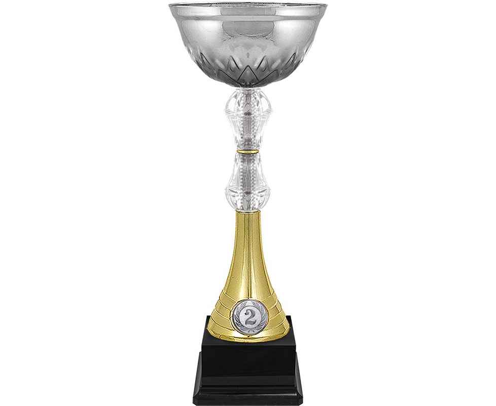 Серия кубков традиционной формы с элегантными чашами из металла и изысканными стемами из пластика. Металлическая эмблема 25 мм в комплекте.