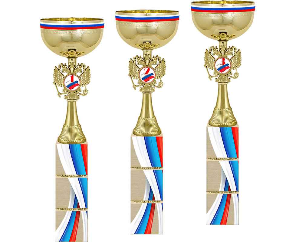Кубки с символикой РФ - для истинных патриотов! Серия кубков Премьер на деревянных брусках с УФ печатью триколор.