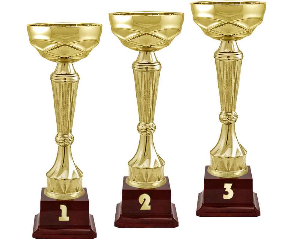 Кубок, серия кубков традиционной формы с элегантными чашами из металла и изысканными стемами из пластика. Цифры из акрилового стекла в комплекте.