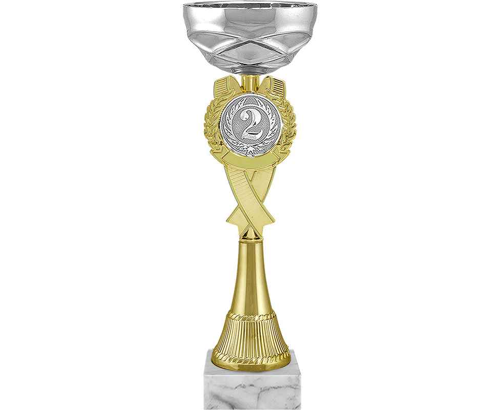 Серия кубков традиционной формы с элегантными чашами из металла и изысканными стемами из пластика. Металлическая эмблема 50 мм в комплекте.