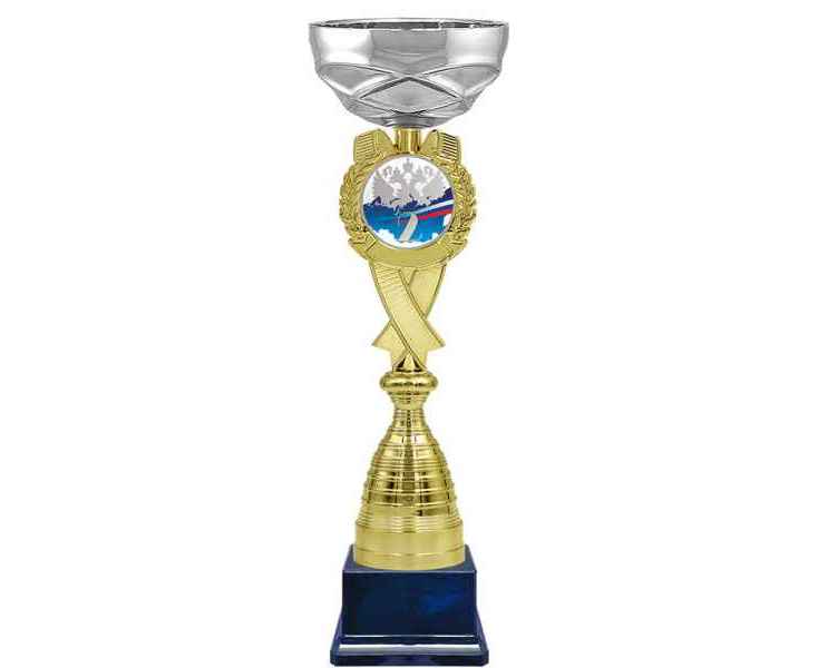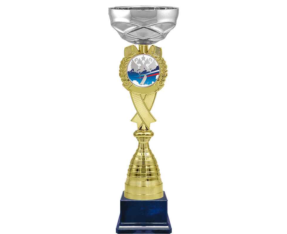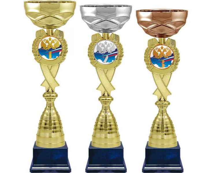 Серия кубков традиционной формы с элегантными чашами из металла и изысканными стемами из пластика. Металлическая эмблема 50 мм в комплекте.