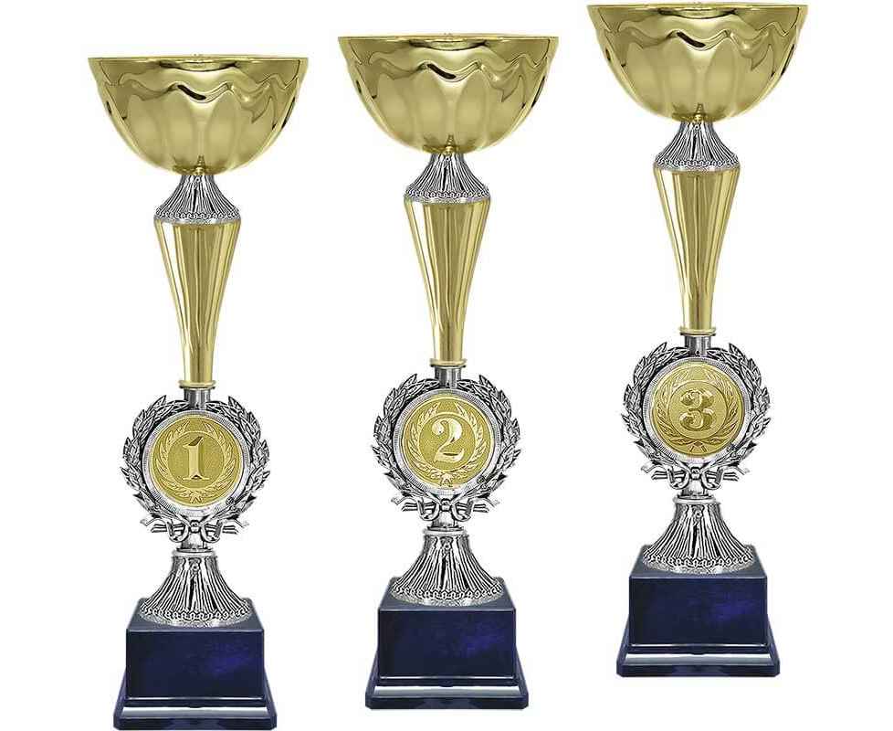 Серия кубков традиционной формы с элегантными чашами из металла и изысканными стемами из пластика. Металлическая эмблема 50 мм в комплекте.