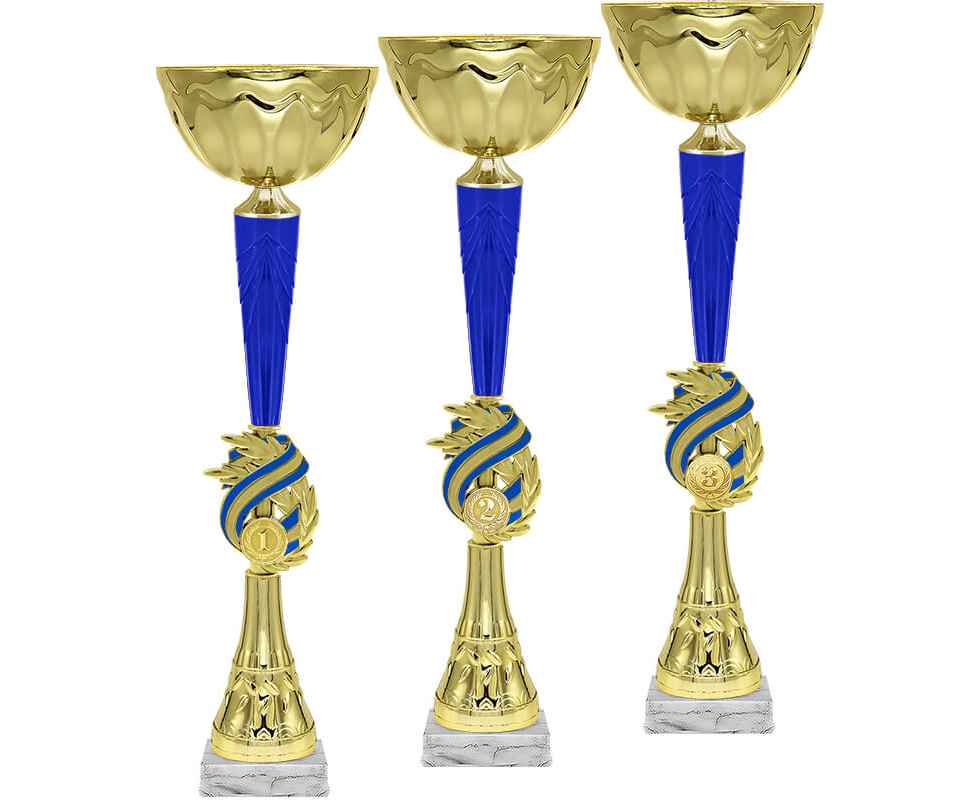 Кубок, серия кубков традиционной формы с элегантными чашами из металла и изысканными стемами из пластика. Металлическая эмблема 25 мм в комплекте.