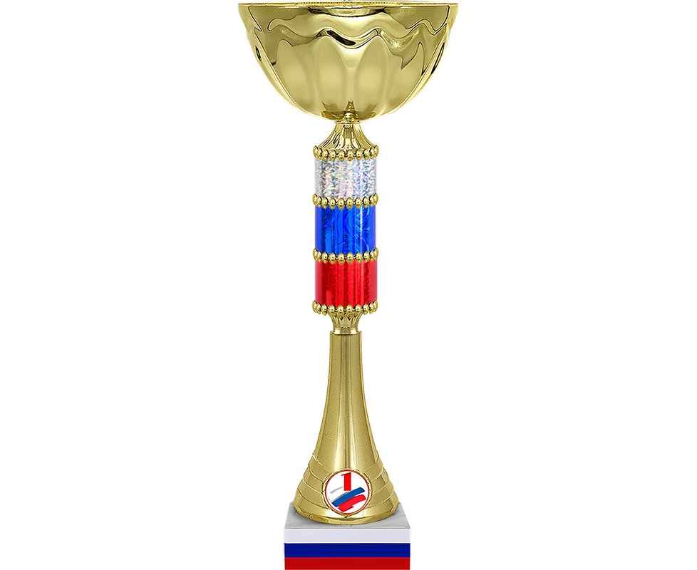 Серия кубков Капитон. Средняя часть кубка состоит из пластиковых труб D 40 мм. Металлическая эмблема 25 мм в комплекте.