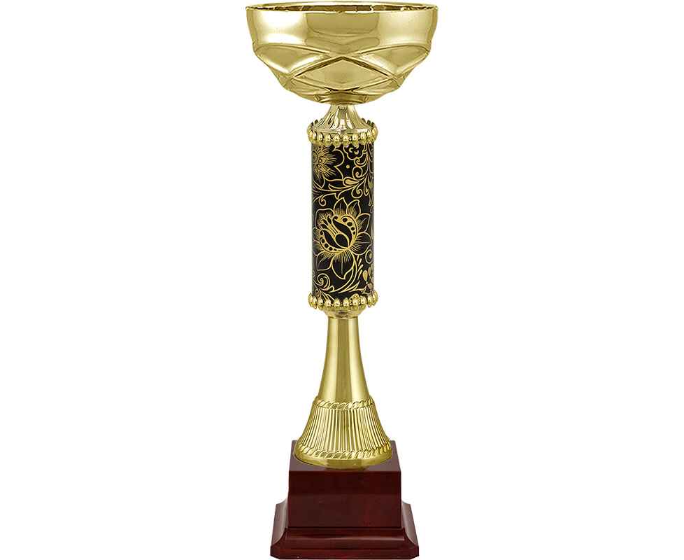 Серия традиционной формы с элегантными чашами из металла и изысканными ножками из пластика. Средняя часть кубка представляет собой пластиковую трубу с наклейкой с росписью под хохлому.