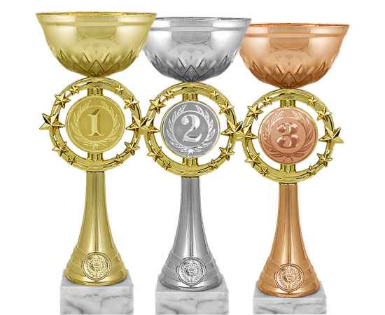 Кубок, серия кубков традиционной формы с элегантными чашами и изысканными стемами из пластика. Металлическая эмблема 50 мм в комплекте.