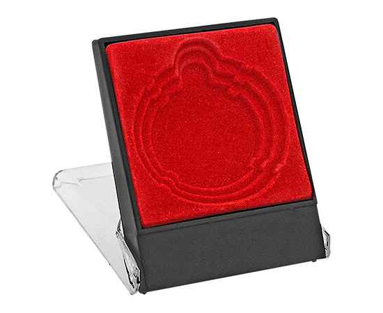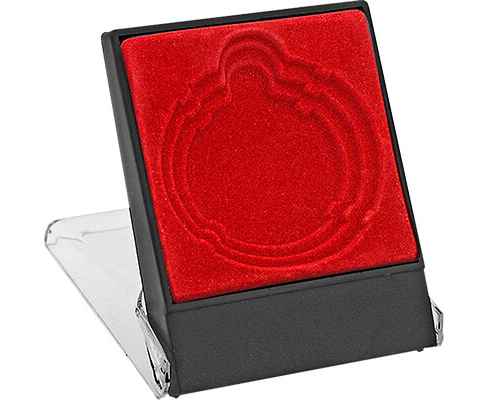 Футляр для медали. Материал - черный пластик с прозрачной крышкой. Подложка красного цвета. Уважаемые покупатели, на этот товар не распространяется действие дисконтных карт и других скидок
