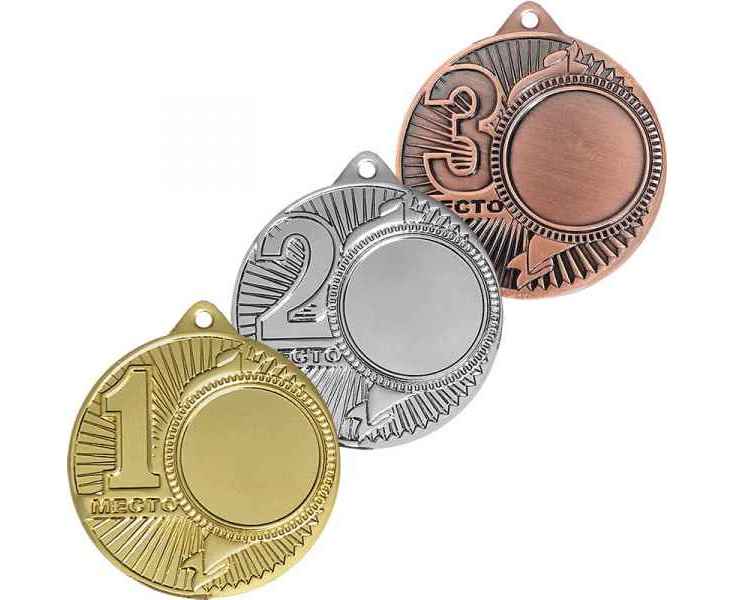 Наградной комплект '1,2,3 место' из 3-х медалей (цвет: золото, серебро, бронза). Может комплектоваться лентами (заказывается отдельно).