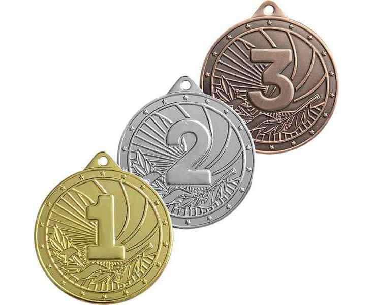 Наградной комплект '1,2,3 место' из 3-х медалей (цвет: золото, серебро, бронза). Может комплектоваться лентами (заказывается отдельно).