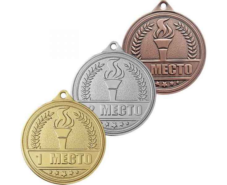 Наградной комплект '1,2,3 место' из 3-х медалей (цвет: золото, серебро, бронза). Может комплектоваться лентами (заказывается отдельно).