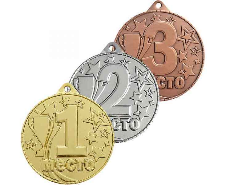 Наградной комплект '1,2,3 место' из 3-х медалей (цвет: золото, серебро, бронза). Может комплектоваться лентами (заказывается отдельно).