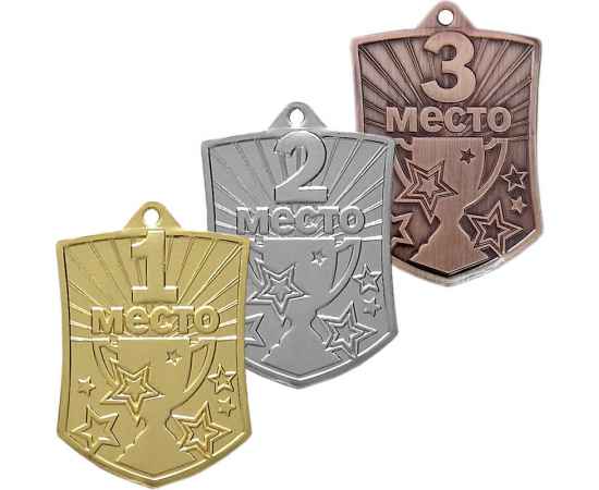 Наградной комплект '1,2,3 место' из 3-х медалей (цвет: золото, серебро, бронза). Может комплектоваться лентами (заказывается отдельно).