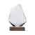 Награда выполнена из прозрачного стекла, имеет интересную асимметричную форму и расположена на деревянном постаменте.