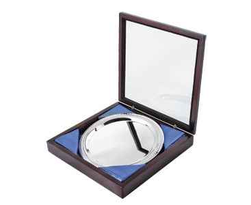 Подробнее о Блюдо подарочное, D = 20 см, посеребренный металл, дерево, лазерная гравировка