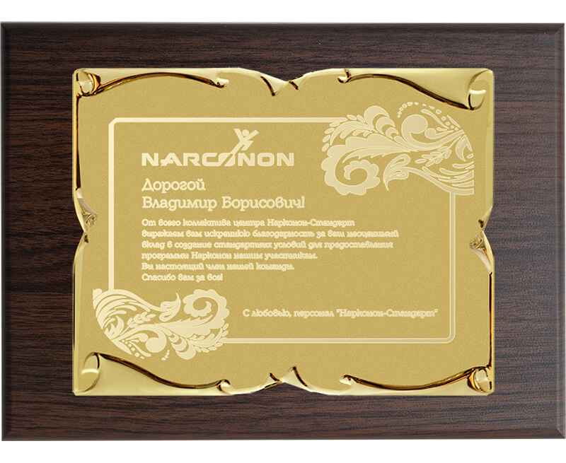 Подробнее о 1914-973 Плакетка с дипломом и лазер.гравировкой (золото)