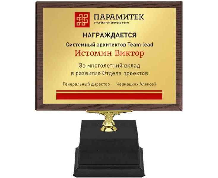 В комплект награды входит: ламинированная плакетка из МДФ на пластиковой подставке + метал. пластина (матовое золото) + Сублимац. печать по Вашему макету! Разработка макета оплачивается дополнительно