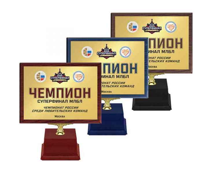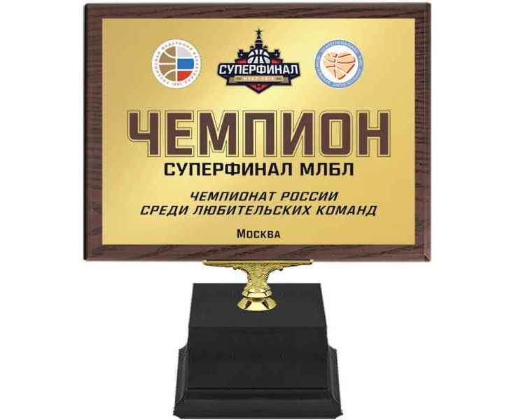 В комплект награды входит: ламинированная плакетка из МДФ на пластиковой подставке + металлическая пластина (матовое золото) + УФ печать по Вашему макету! Разработка макета оплачивается дополнительно