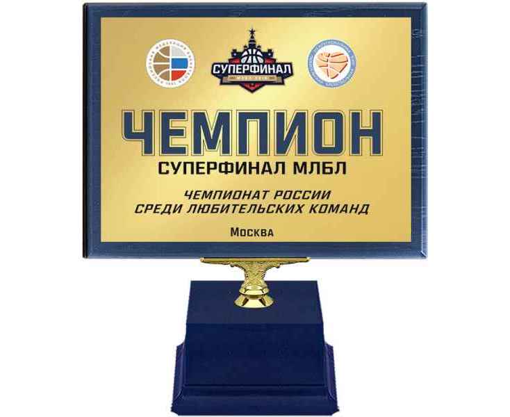 В комплект награды входит: ламинированная плакетка из МДФ на пластиковой подставке + металлическая пластина (матовое золото) + УФ печать по Вашему макету! Разработка макета оплачивается дополнительно
