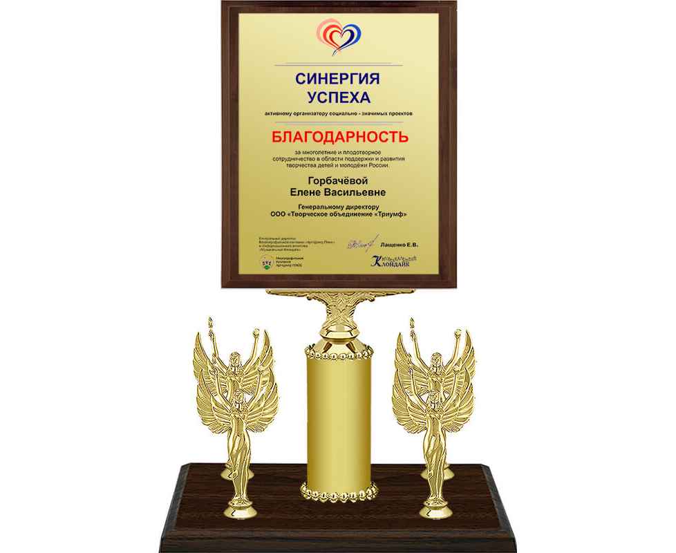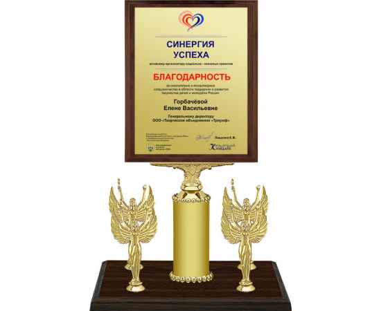 В комплект входит: плакетка из прессованного дерева 15х20 см+метал. пластина (глянцевое золото)+сублимац. печать по Вашему макету (разработка макета оплачивается дополнительно)+пласт.фигуры 11 см.