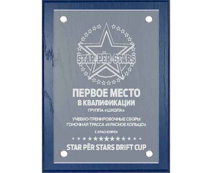 Готовое решение для награждения или подарка. Ламинированная плакетка из МДФ, декорированная акриловым стеклом на металлических держателях. Лазерная гравировка на акриловом стекле в комплекте.