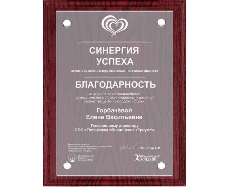 Готовое решение для награждения или подарка. Плакетка из МДФ с фигурной кромкой, декорированная акриловым стеклом на металлических держателях. Лазерная гравировка на акриловом стекле в комплекте.