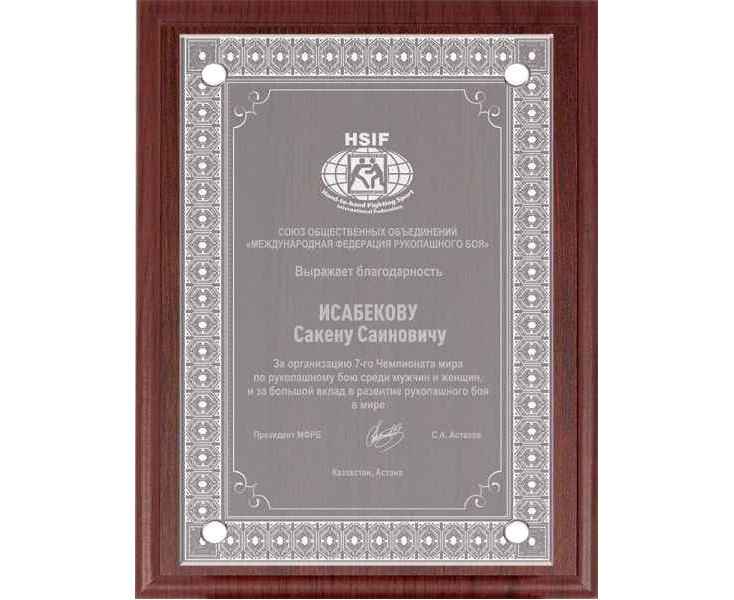 Готовое решение для награждения или подарка. Плакетка из МДФ с фигурной кромкой, декорированная акриловым стеклом на металлических держателях. Лазерная гравировка на акриловом стекле в комплекте.