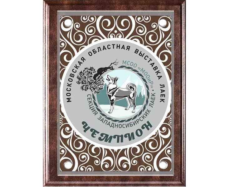 Готовое решение для награждения или подарка. Плакетка из МДФ с фигурной кромкой, декорированная акриловым стеклом на металлических держателях. УФ печать 100% на акриловом стекле в комплекте.