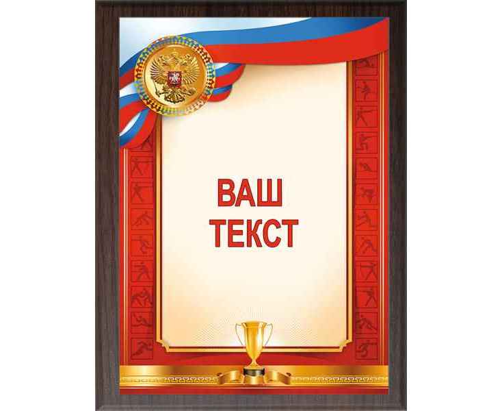 Готовое решение для награждения. Вариант комплектации планшета №132 триколор. В комплект входит: (ламинированная плакетка из МДФ + металлическая пластина (матовое золото) + УФ печать.